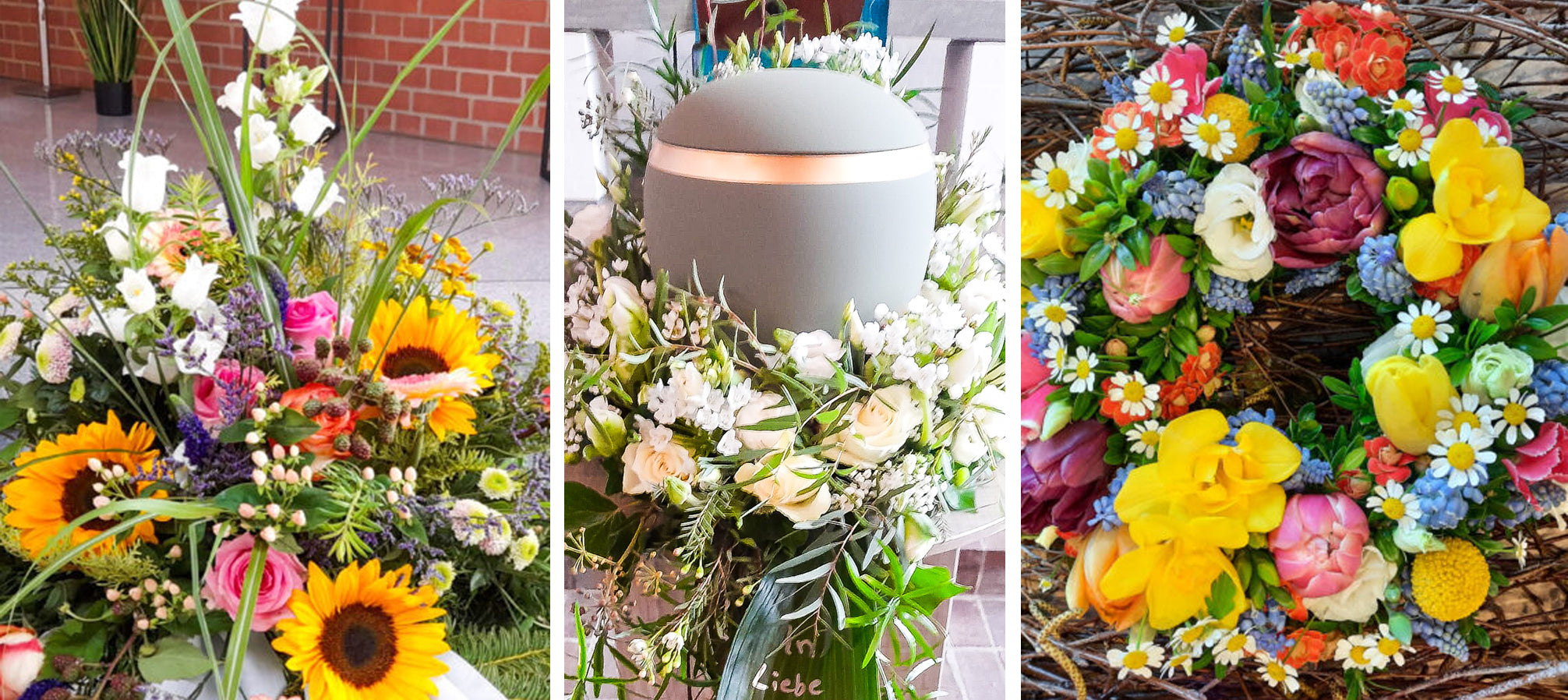 Mit Feinsinn und Einfühlungsvermögen gestalten wir mit Dir gemeinsam den schönsten Blumenschmuck zum Abschied Deiner Lieben.