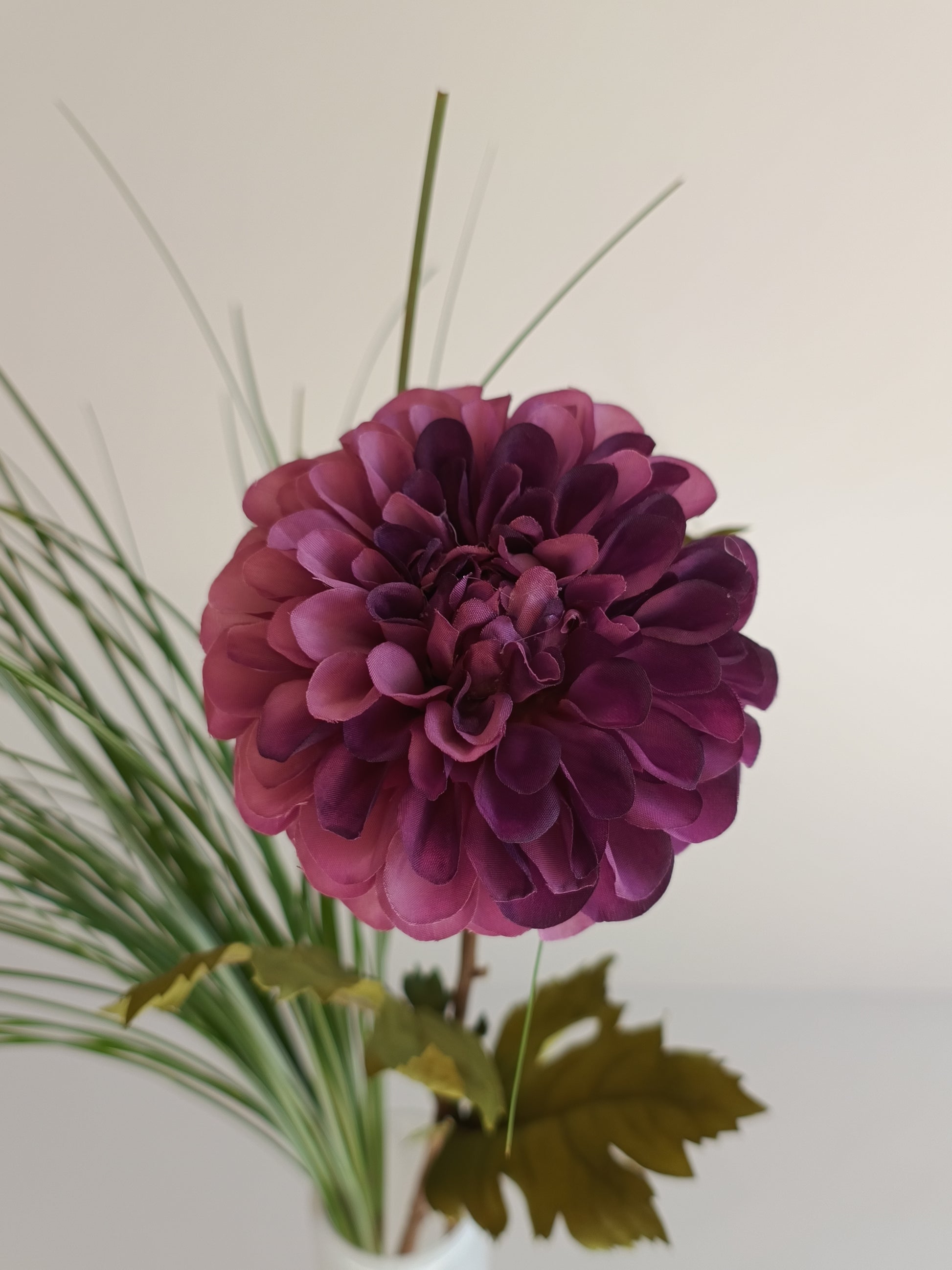 Verleih deiner Wohnung mit dieser eleganten Dahlie in lila einen farbenfrohen Akzent – ganz ohne Gießen! Perfekt für dunkle Ecken, in denen echte Pflanzen nicht gedeihen, bleibt diese Seidenblume immer in voller Blüte und bringt Farbe in jedes Zimmer.
