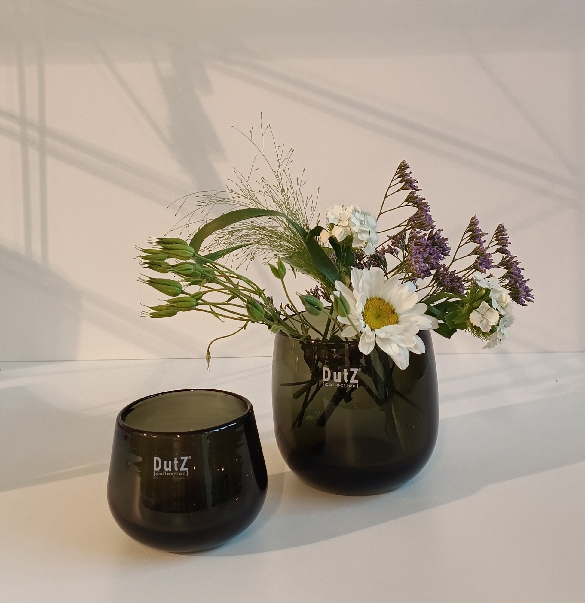 Der DutZ Pot ist ein stilvolles Glasgefäß, das in drei verschiedenen Größen erhältlich ist und in den klassischen Farben Weiß und Schwarz angeboten wird. Jede Vase wird in liebevoller Handarbeit gefertigt und ist mundgeblasen, was ihr eine individuelle Note und hohe Qualität verleiht.