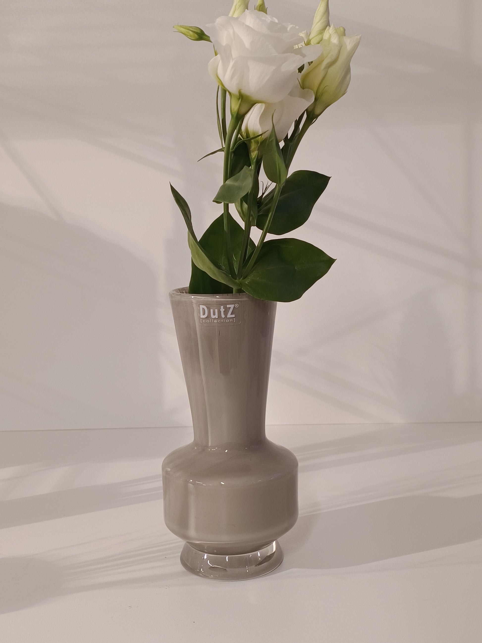 Die DutZ Vase Vibe in Taupe ist ein elegantes und vielseitiges Einzelstück, das durch sein modernes Design und die warme Farbgebung sofort ins Auge fällt. Als Highlight auf einem Tisch, einer Anrichte oder im Regal wirkt sie besonders schön, kann aber auch in Kombination mit mehreren Vasen zu einem beeindruckenden Blickfang werden. Dank ihrer handgefertigten und mundgeblasenen Verarbeitung ist jede Vase ein Unikat, das deinem Zuhause eine stilvolle und individuelle Note verleiht. Ob mit wenigen Blumen oder ganz pur – die Vibe in Taupe setzt immer einen schönen Akzent!