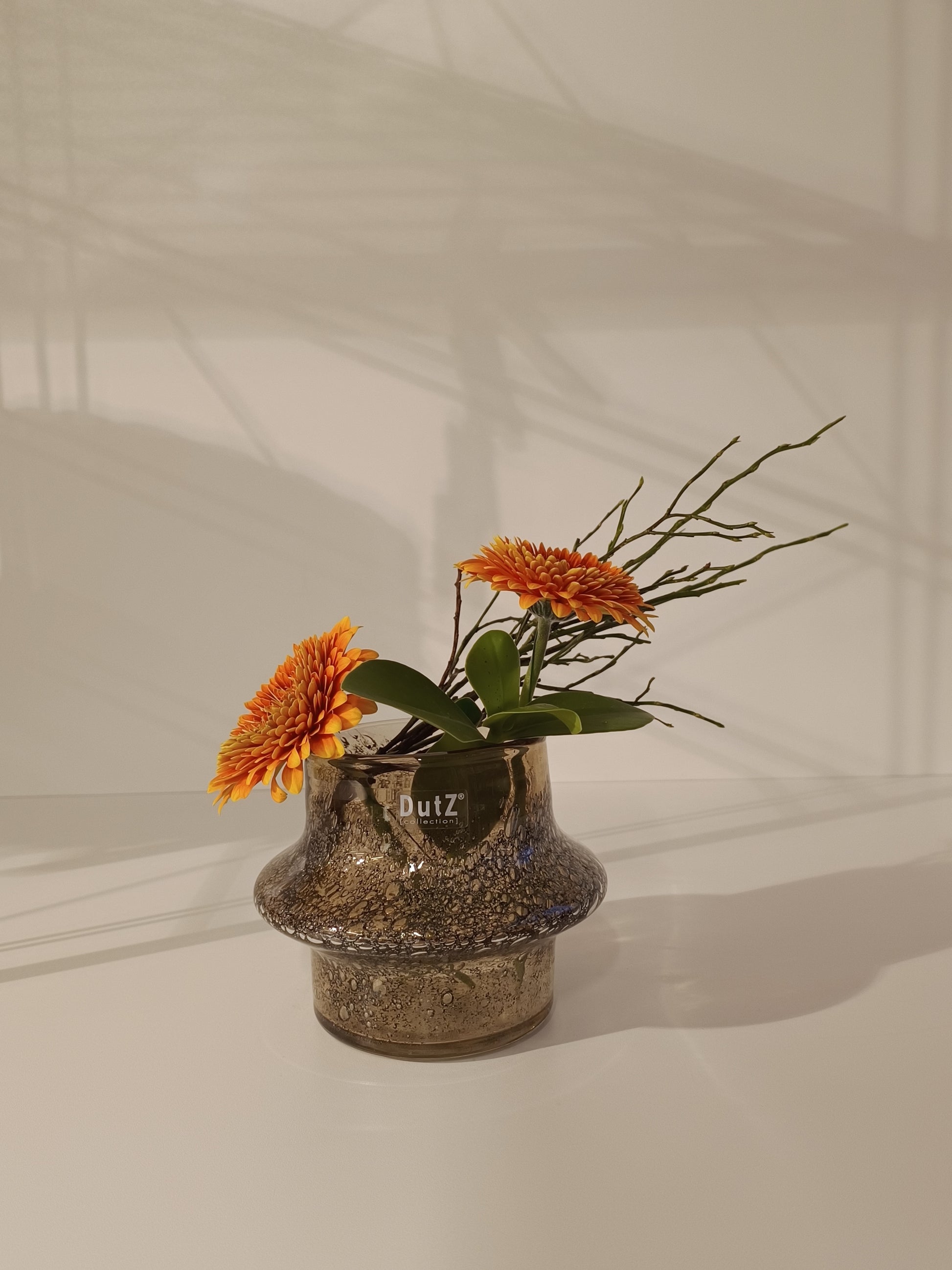 Die DutZ Vase Ringo in der Farbe Amber Bubbles ist ein wunderschönes, handgefertigtes Unikat, das durch seine warme, bernsteinfarbene Tönung sofort ins Auge fällt. Mit den einzigartigen Blasen im Glas verleiht sie jedem Raum eine gemütliche und stilvolle Atmosphäre. Sie ist vielseitig einsetzbar – perfekt für Pflanzen, Schnittblumen oder als elegantes Windlicht. Dank ihrer handgefertigten und mundgeblasenen Herstellung ist jede Vase ein besonderes Stück, das deinem Zuhause eine natürliche und charmante Note verleiht. Ob einzeln oder in Kombination – die Ringo in Amber Bubbles ist ein toller Blickfang!