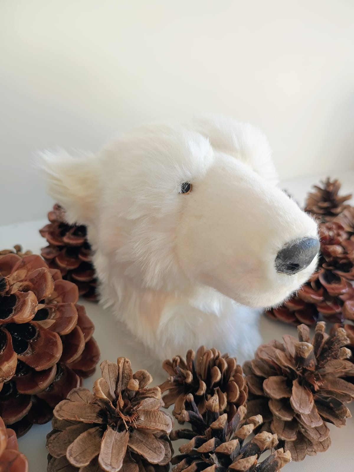 Verleihen Sie Ihrem Zuhause einen Hauch von Arktis! Dieser liebevoll gestaltete Eisbärenkopf zieht alle Blicke auf sich und bringt eine einzigartige, winterliche Atmosphäre in Ihre vier Wände.