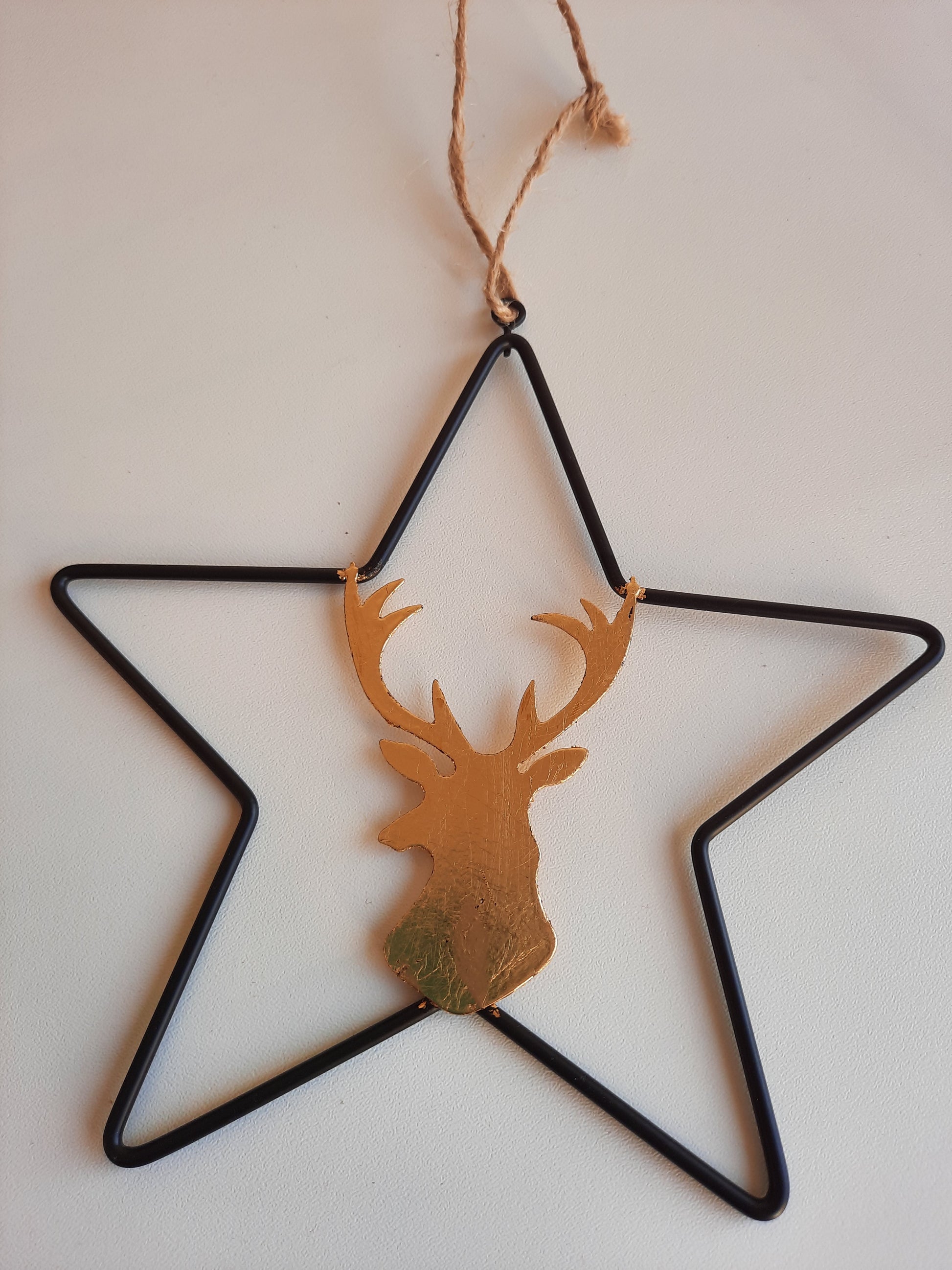 Dieser goldene Elch in seinem schlichten Metallstern ist so zeitlos schön!