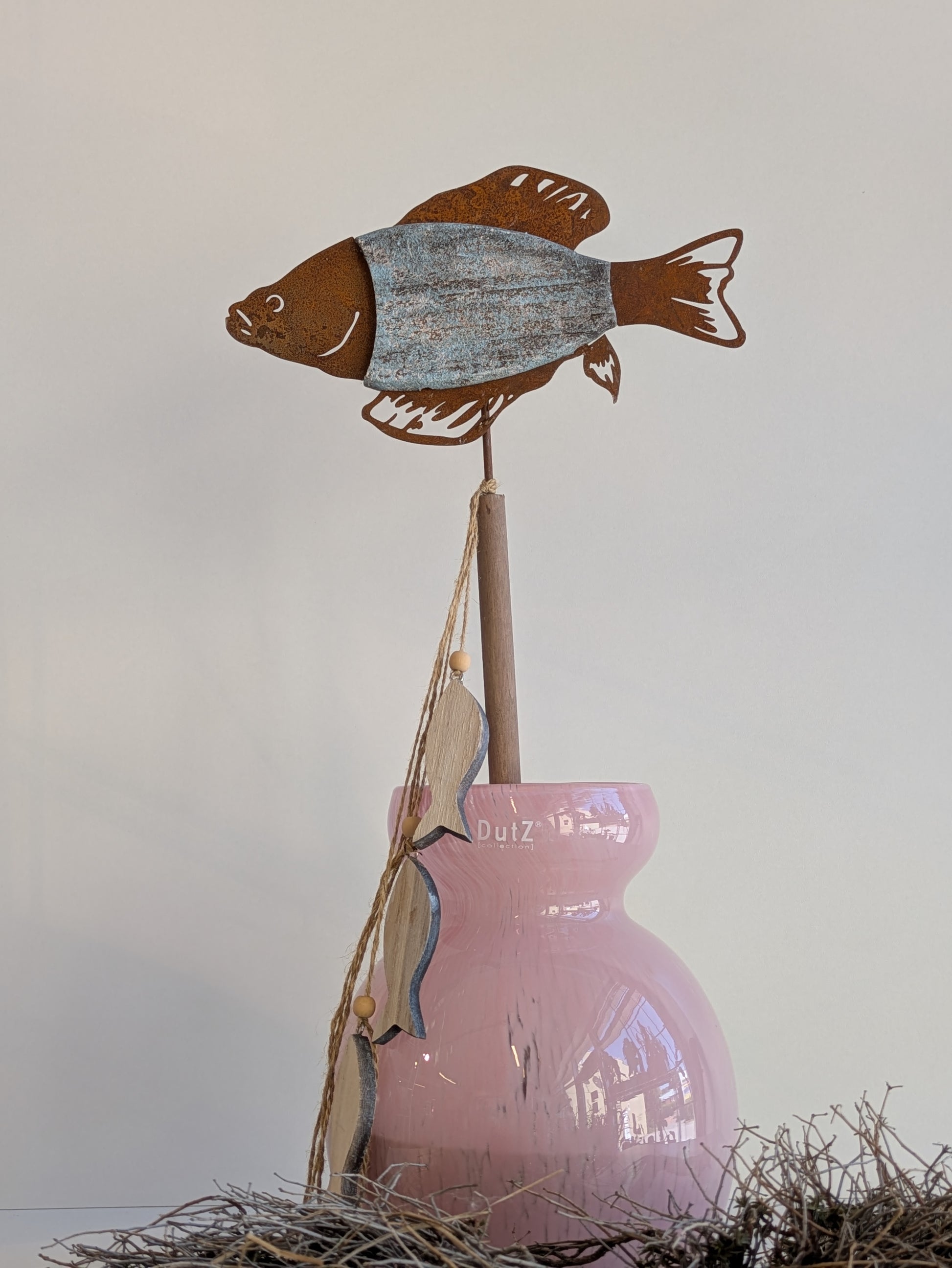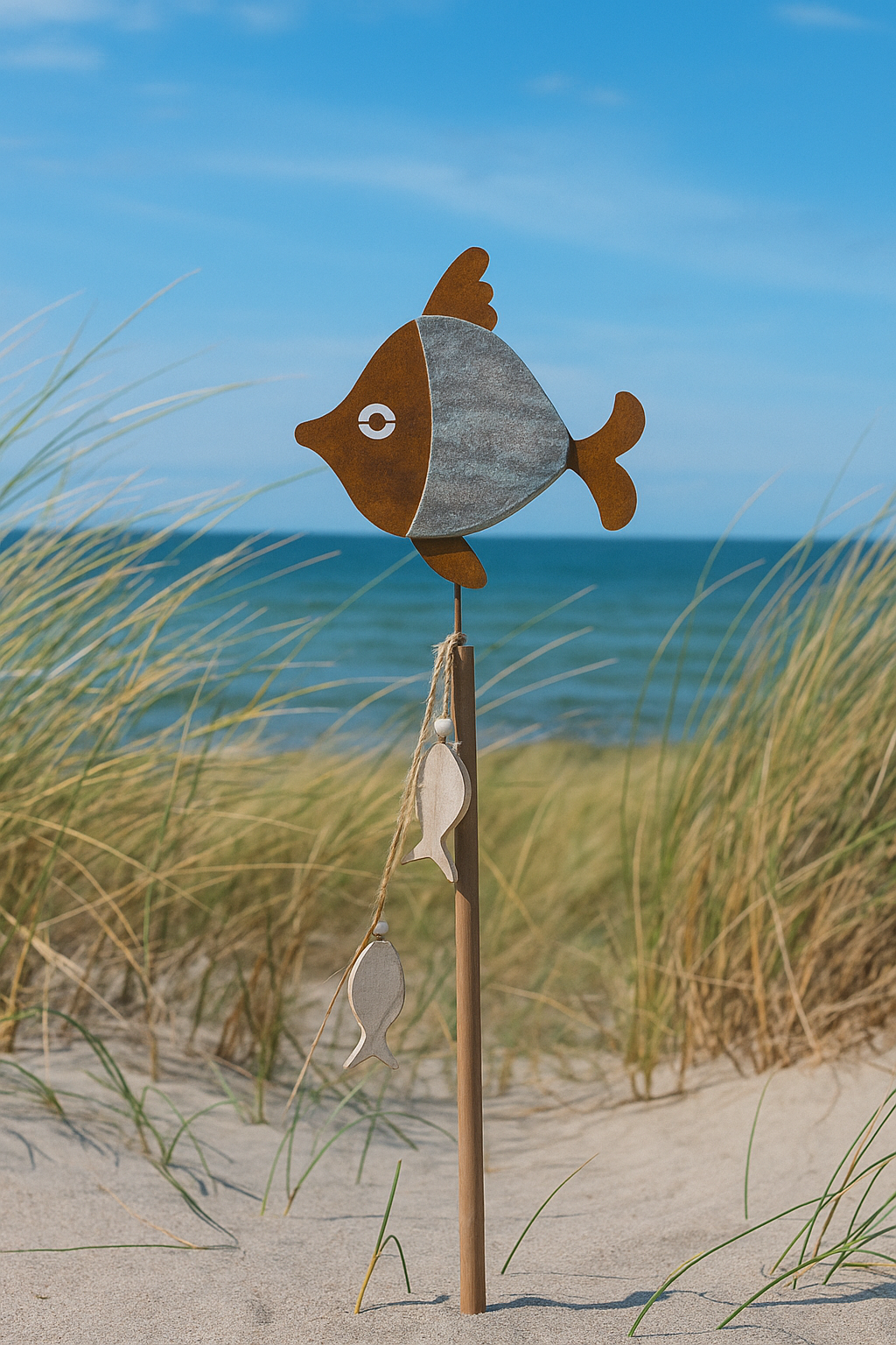 Stell dir einen sommerlichen Garten vor, der mit liebevollen Details im Meeresstil gestaltet ist. Fischstecker aus Metall und Holz schmücken die Beete und Wege, zeigen zwei verschiedene Fischköpfe und verleihen dem Garten einen maritimen Charme. Das sanfte Meeresrauschen im Hintergrund sorgt für ein echtes Summerfeeling und lässt dich den Alltag vergessen. Perfekt für entspannte Stunden im Freien, bei denen das Meer und der Sommer direkt spürbar sind. Eine wunderschöne Kulisse, die Urlaubsstimmung und Naturverbundenheit vereint!