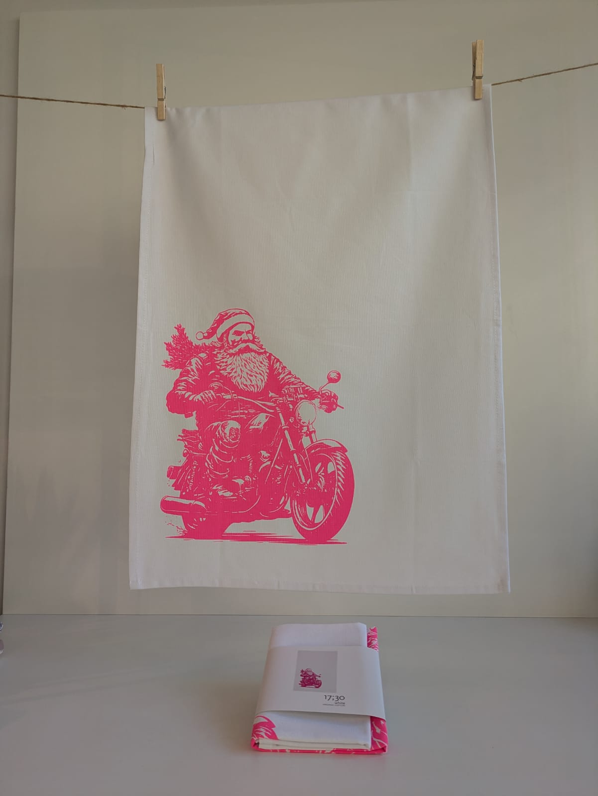 Geschirrhandtuch Weihnachtsmann Motorrrad
