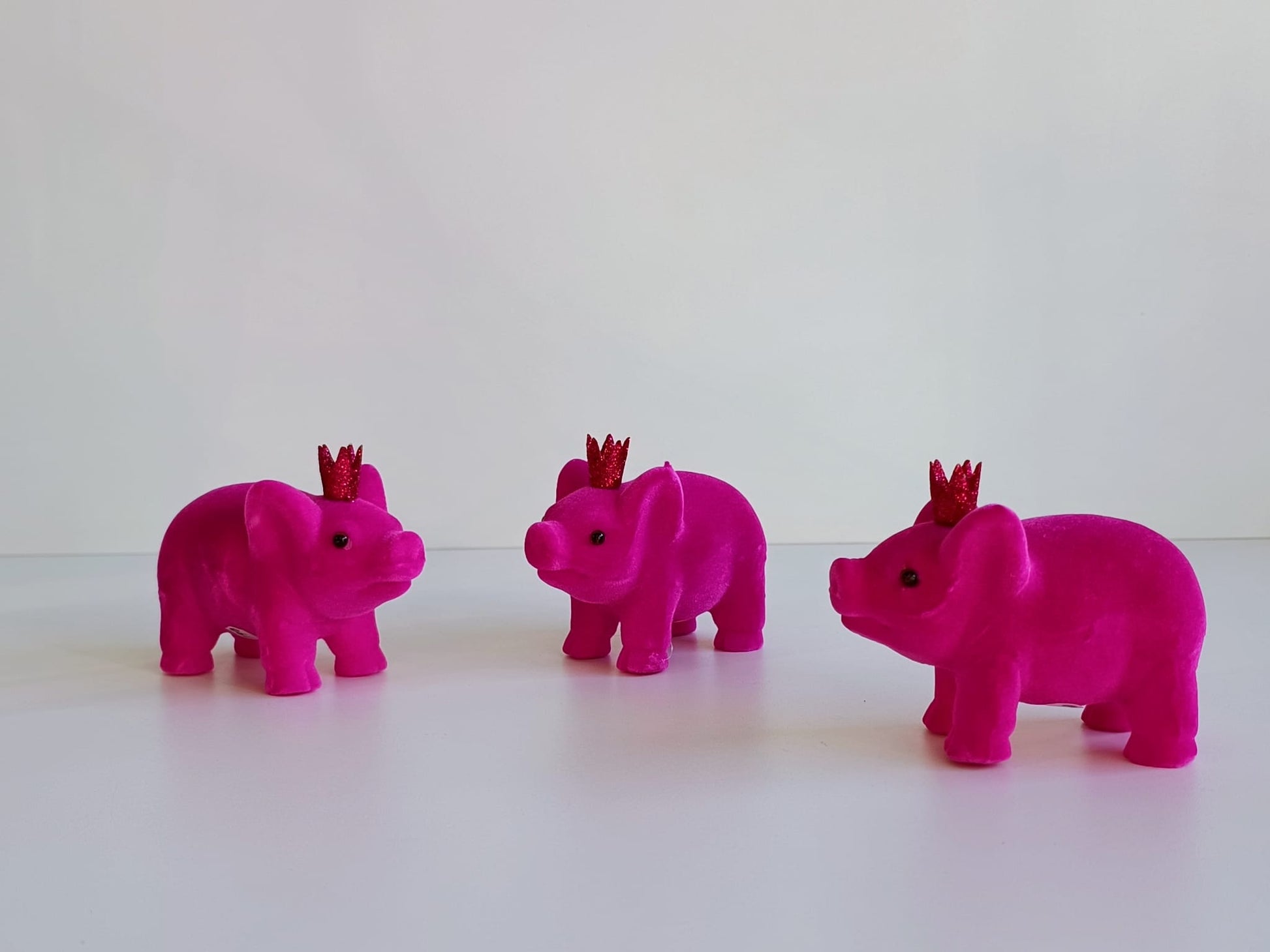Die kleinen Schweinchen, ein großes Statemnet: Unsere pinkfarbenden Glücksschweinchen tragen funkelnde rote Krönchen und bringen sofort gute Laune in jedes Zuhause. Sie sind nicht nur eine originelles Deko-Highlight, sondern auch ein Symbol für Glück, Freude und Wohlstand.