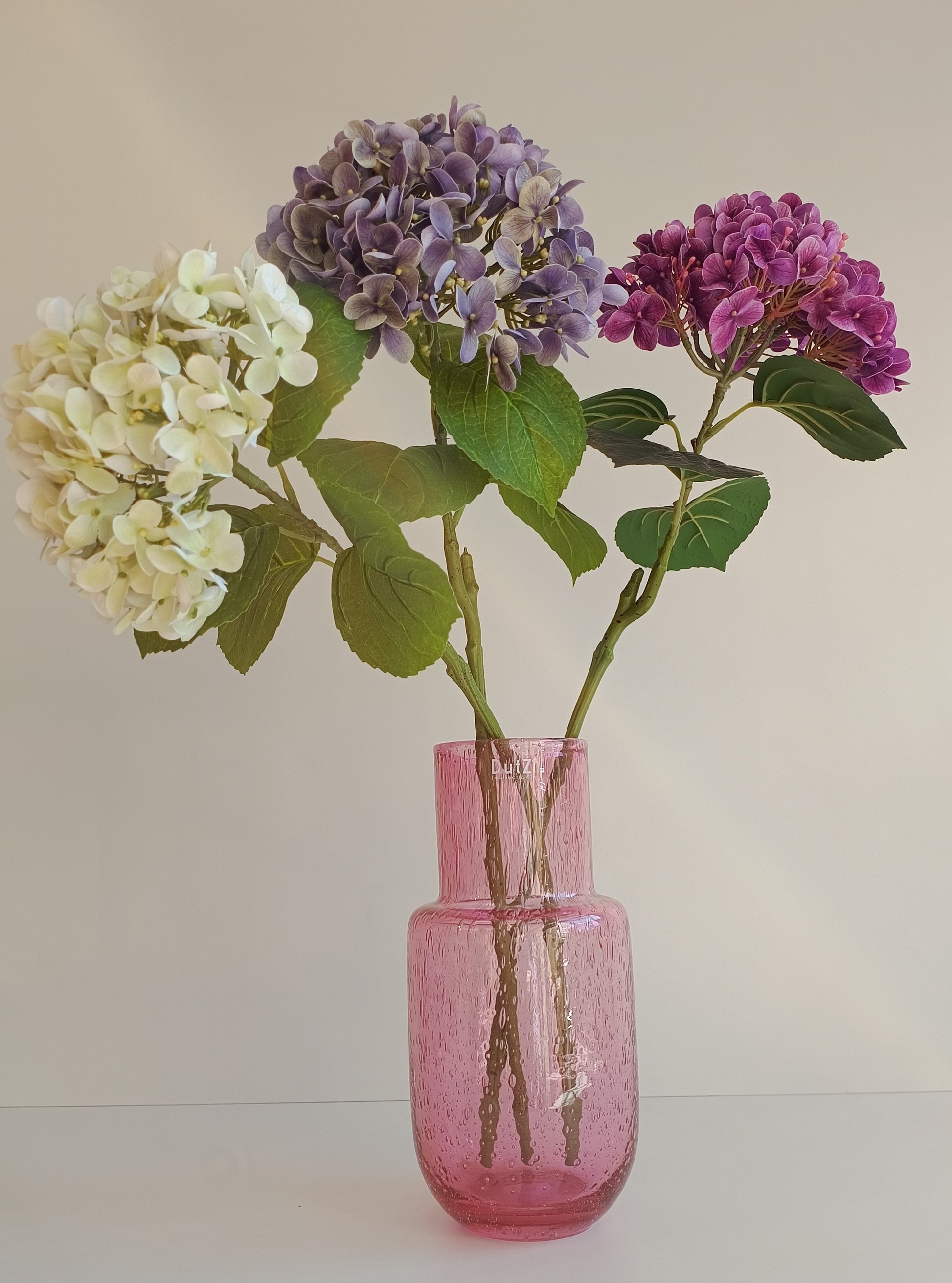 Diese edlen Hortensien aus hochwertiger Seide sehen nicht nur wunderschön aus – sie fühlen sich auch verblüffend echt an! In drei modernen Farben erhältlich, eignen sie sich perfekt als Solitärblüte in der Vase oder in Kombination mit echten Blumen für ein stilvolles Arrangement im Wohnzimmer.