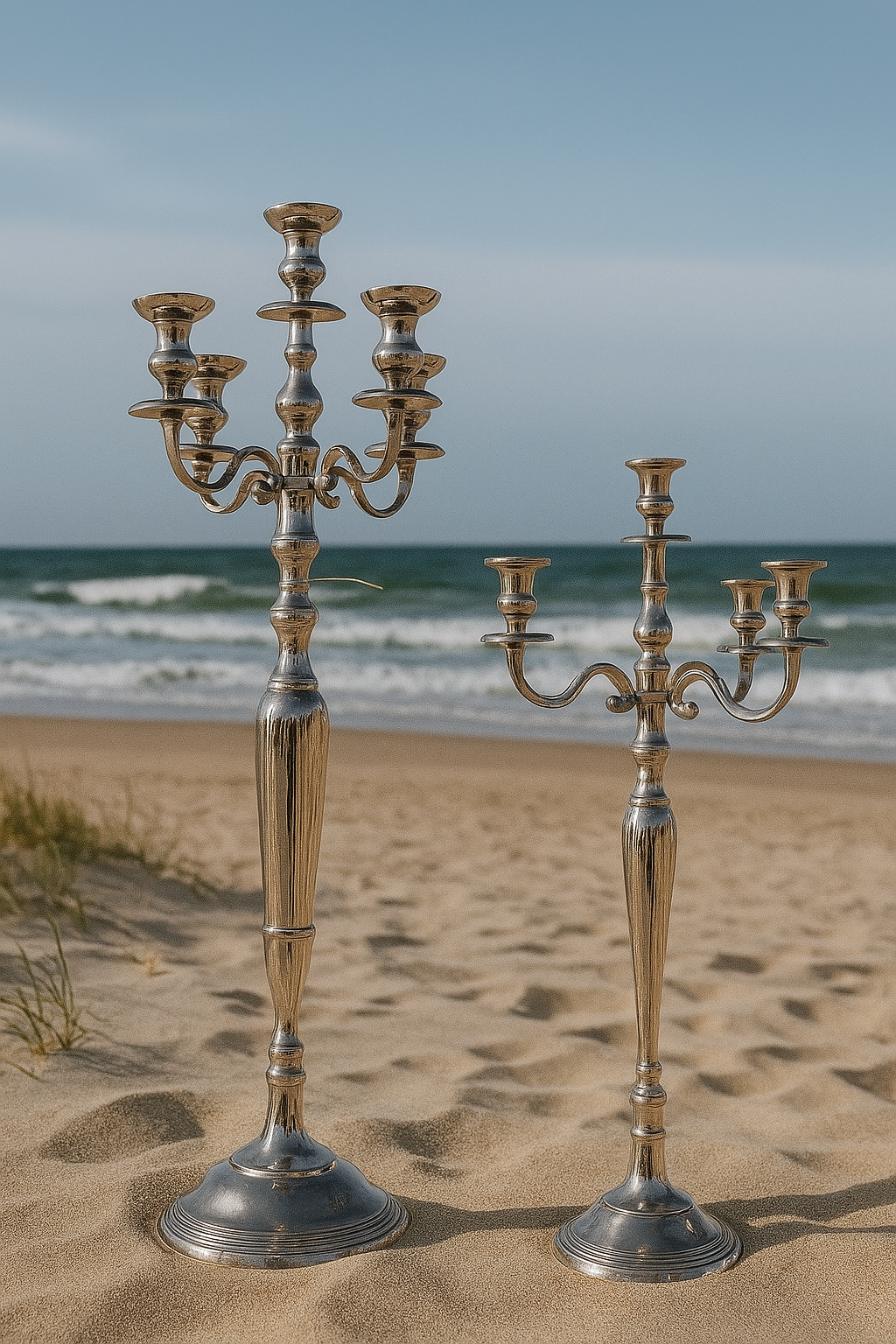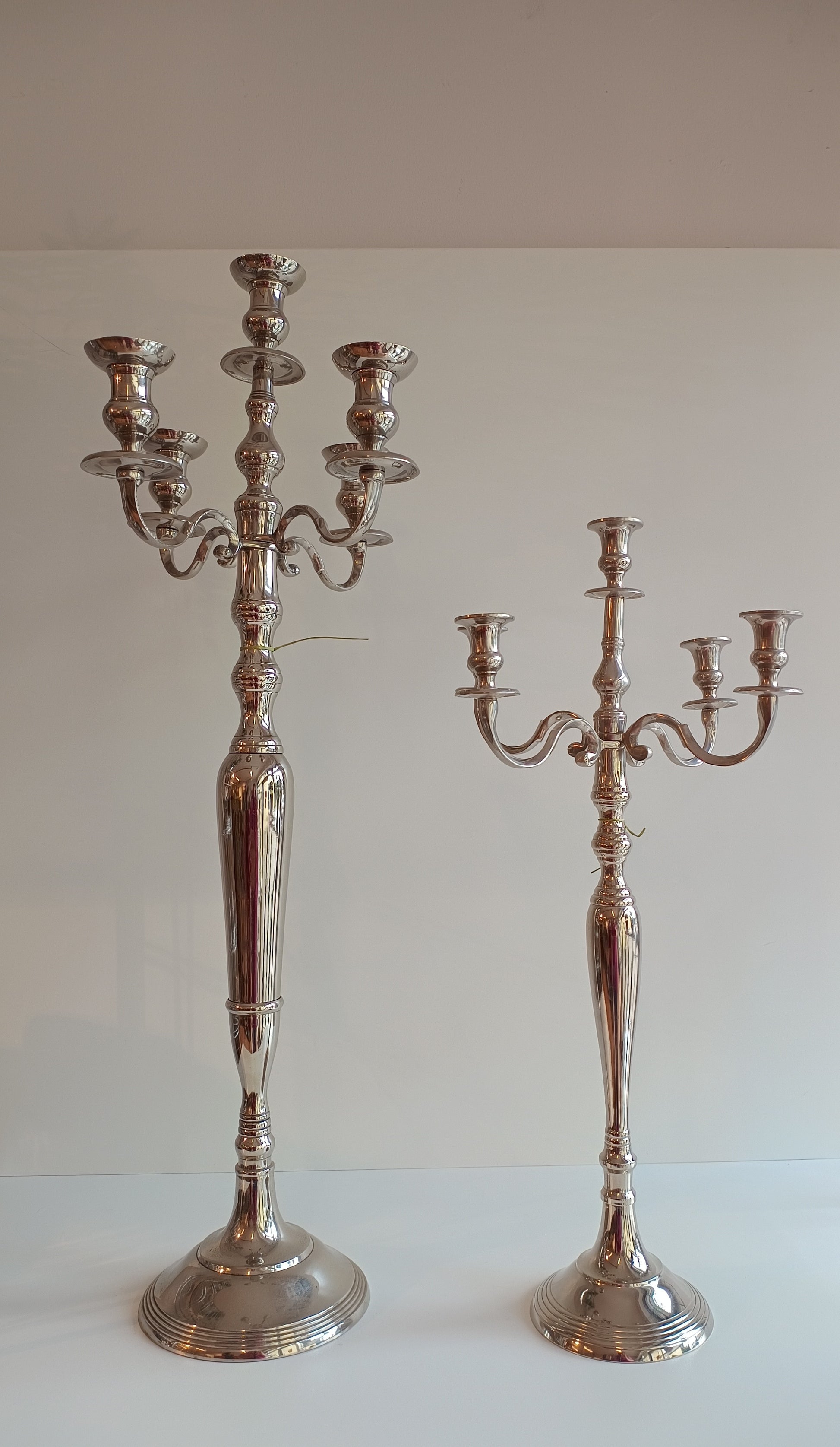 Wenn die Kerzen brennen, reflektiert das Licht sanft auf der silbernen Oberfläche und schafft eine warme, einladende Atmosphäre. Dieser Kerzenleuchter ist nicht nur ein funktionales Accessoire, sondern auch ein stilvolles Statement, das jedem Raum einen Hauch von Klasse verleiht. Ideal für festliche Anlässe oder romantische Abende – dieser fünfarmige Kerzenleuchter ist ein Must-have für alle, die Wert auf stilvolle und elegante Wohnaccessoires legen.