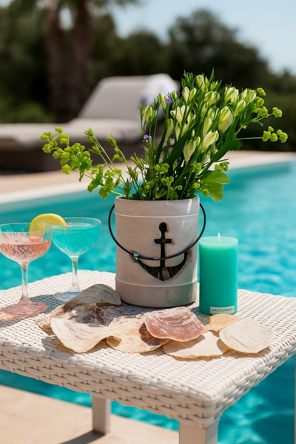 Bringe maritimes Flair auf deinen Gartentisch, Balkon oder in den Strandkorb! Dieses stilvolle Windlicht aus robustem Beton ist in zwei Größen erhältlich und begeistert mit einem dekorativen Anker – perfekt für das ultimative Sommerfeeling. Der natürliche, graue Look des Betons passt ideal zu modernen Outdoor-Arrangements und verleiht deinem Außenbereich ein charmantes, nordisches Ambiente.