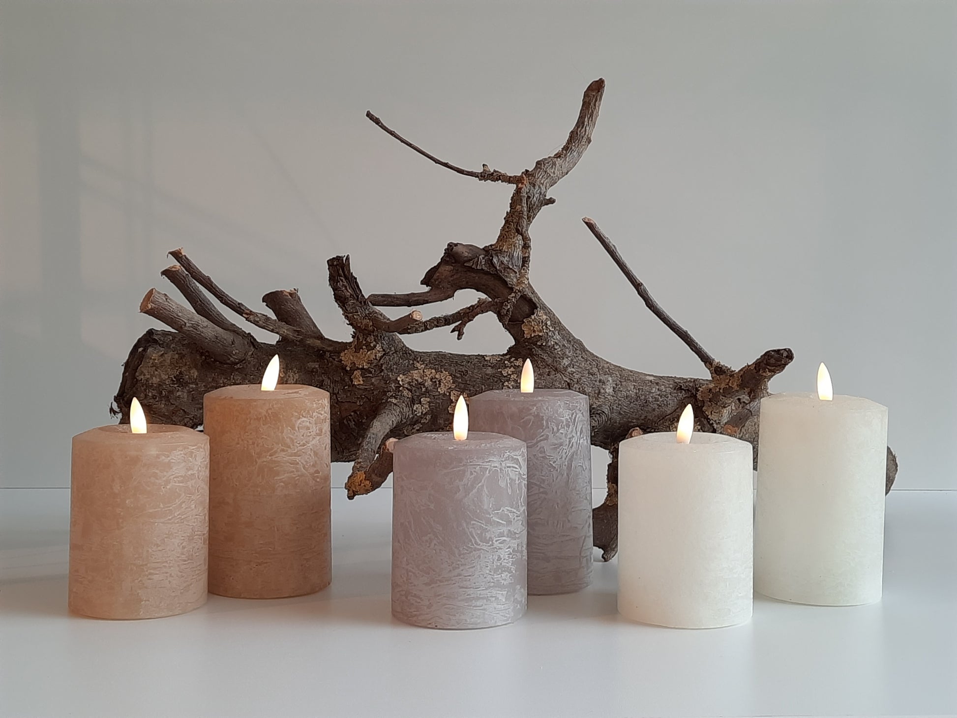Die LED Echtwachs Candle Light Kerzen sind in den Farben Creme, Kaffe und Grau erhältlich.