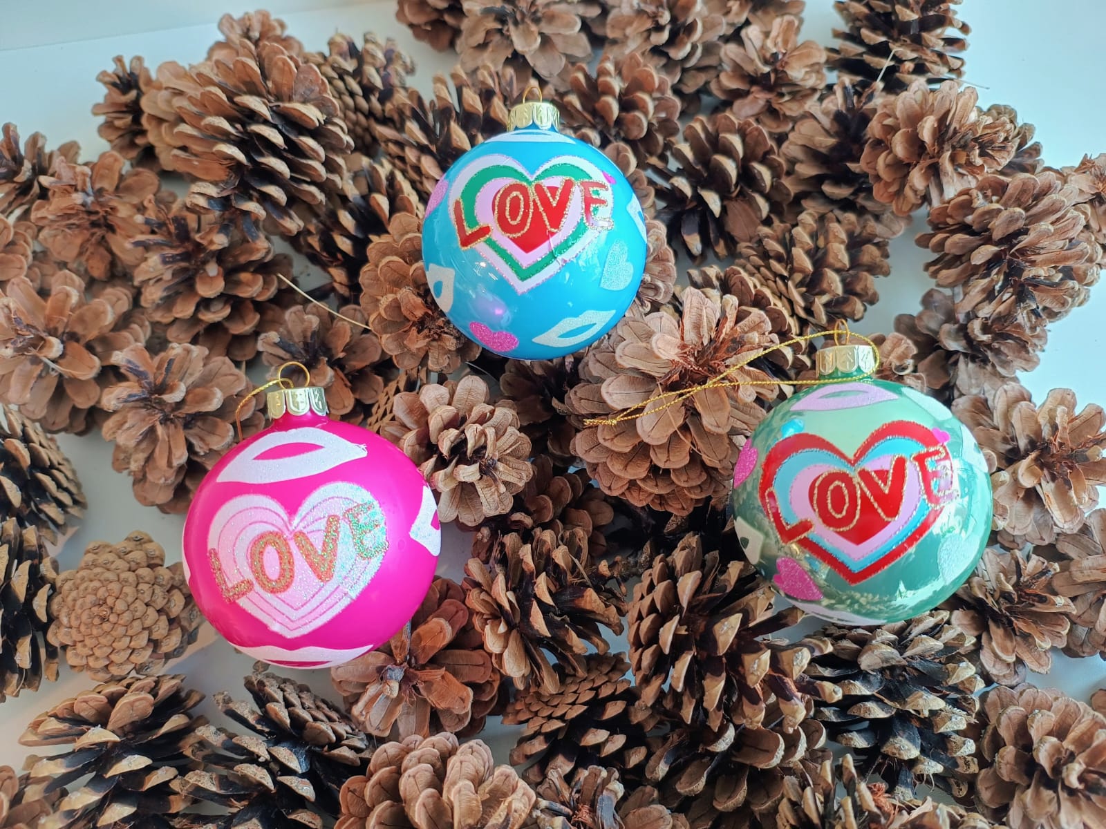 Diese Kugeln bringen mehr als nur Glanz an den Baum - sie bringen Liebe! Mit ihrem auffälligen LOVE-SCHRIFTZUG und den kräftigen Farben in Pink, Türkis und Grün setzen sie ein klares Statement: Weihnachten darf modern, bunt und voller Gefühle sein.