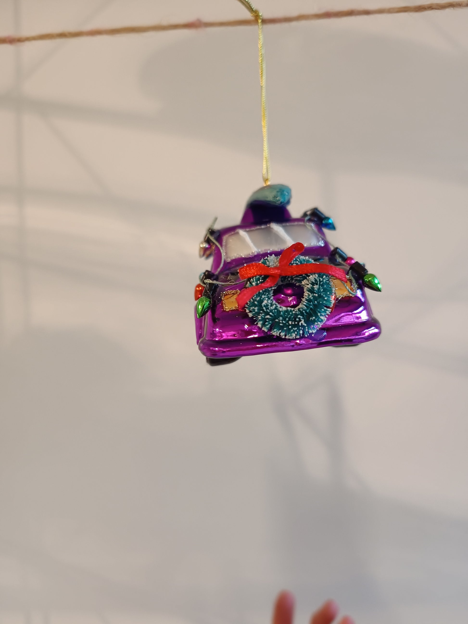 Der glitzernde Weihnachtsanhänger im Retro-Car-Design bringt jede Menge Farbe und Spaß in ihre Festdekoration. Mit seinem leuchtenden Violett, glitzernden Details und der liebevollen Verzierung mit Lichterkette, Surfbrett und Weihnachtskranz ist er ein echter Hingucker - nicht nur für Autofans!